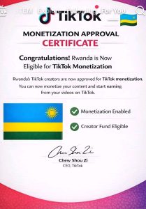 Rwanda has been approved for TikTok monitisation thereby enabling content creators from the country earn money.